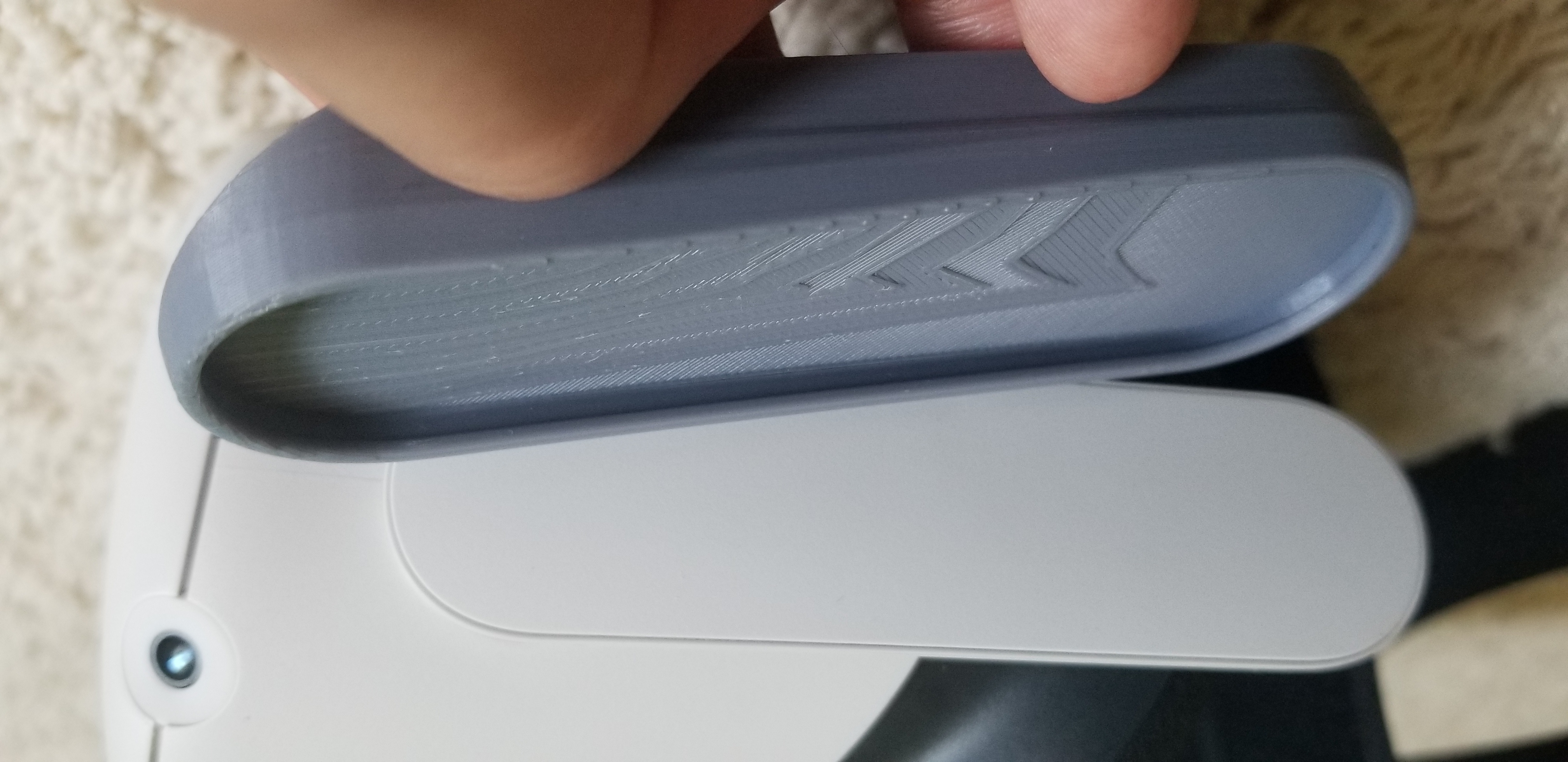 Grab your side pieces. These are adapters to attach your Deluxe Audio Strap! The inside parts that makes contact with your headset snap on from the side pictured here, press firmly and snap this part onto your headset! Do this for both sides.