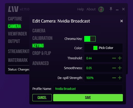 If you need to do any fine tuning you can actually go into the LIV keying menu and adjust threshold or smoothness as needed.